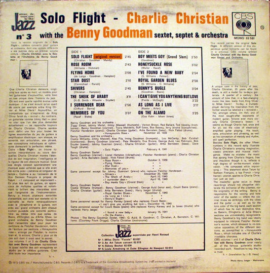 Charlie Christian – Solo Flight: With The Benny Goodman Sextet, Septet and Orchestra Vol. II (Vinyl LP, CBS, 1969, Mono) – VG / EX