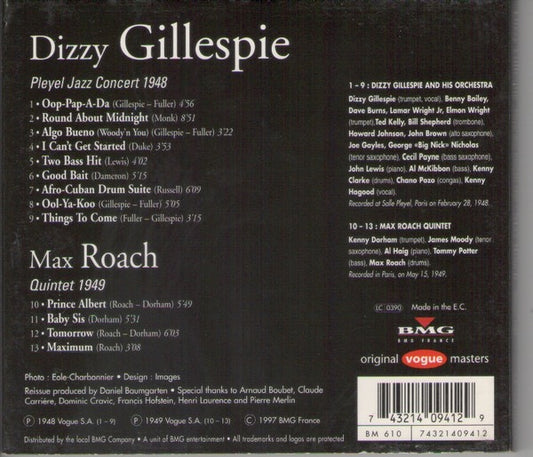 Dizzy Gillespie – Pleyel Jazz Concert 1948 / Max Roach Quintet 1949 (CD, Original Vogue Masters, BMG, 1997) – Mint / Sealed