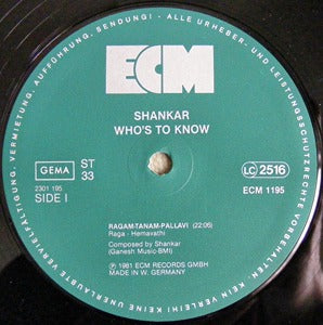 Shankar Who's To Know LP ECM EX/NM