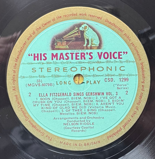 Ella Fitzgerald - Sings Gershwin Vol. Three (Vinyl LP, HMV, 1959 Mono) - EX / EX