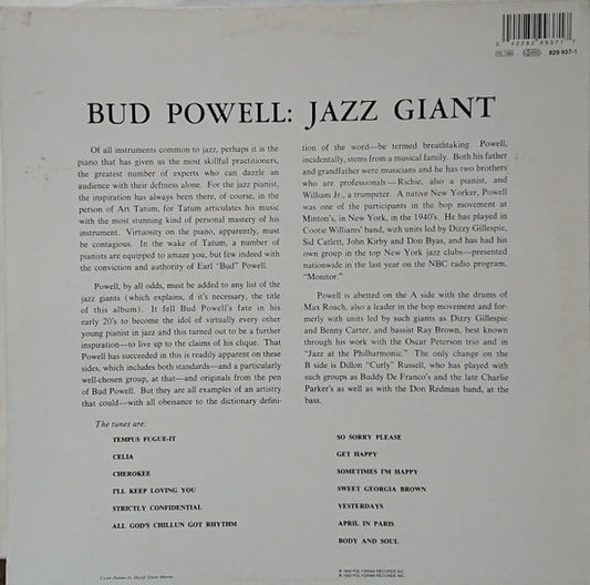 Bud Powell Jazz Giant! LP Verve Near Mint vinylRegular price £15.00Regular priceUnit price / per-