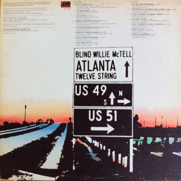 Atlanta Twelve String is a 1972 Atlantic release documenting earlier recordings by Blind Willie McTell, centred on his distinctive twelve-string guitar style. The performances highlight fluid fingerpicking, clear vocal phrasing, and the melodic strength of his Piedmont blues approach. Sparse and direct, the material places emphasis on rhythm, storytelling, and instrumental nuance.