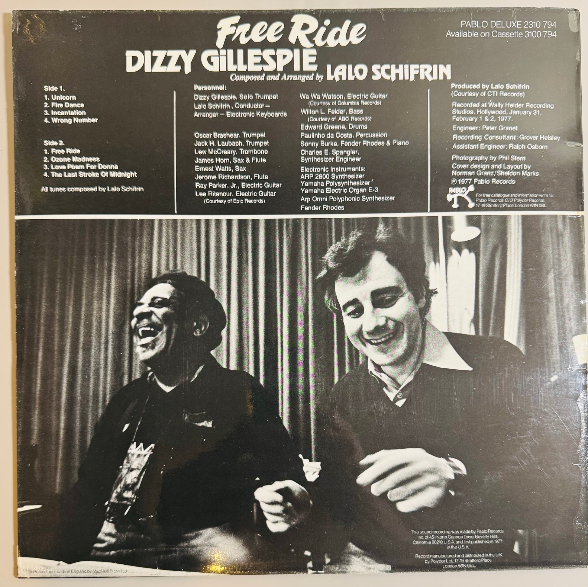 Dizzy Gillespie, Lalo Schifrin – Free Ride (LP, Pablo 2310 794, EX/EX)